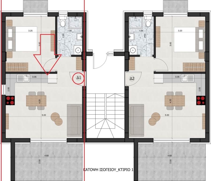 Διαμέρισμα ισογείου 48,44 τ.μ στη Νέα Πέραμο. Το διαμέρισμα ανήκει σε σύγχρονο συγκρότημα τριών κτιρίων υπό κατασκευή και αποτελείται από 1 δωμάτιο, ενιαίο χώρο σαλόνι - κουζίνα και μπάνιο.Διαθέτει αποκλειστική χρήση γης 111,64 τ.μ.