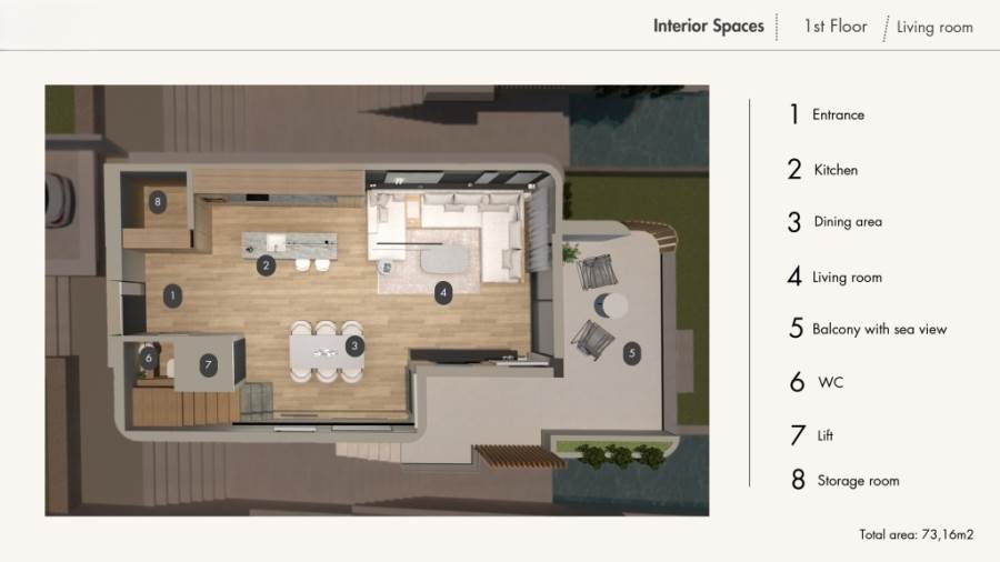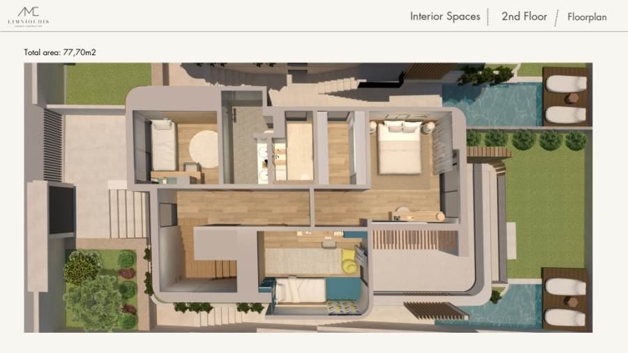 Πολυτελής Μεζονέτα 219 τετρ. μέτρα σε συγκρότημα κατοικιών υπό κατασκευή στο Παληό. Η κατοικία αναπτύσσεται σε 3 επίπεδα με το 1ο επίπεδο ( ισόγειο )να δίνει τη δυνατότητα να χρησιμοποιηθεί και ως ανεξάρτητο διαμέρισμα με ενιαίο χώρο σαλόνι-κουζίνα, 1 δωμάτιο και μπάνιο. Το 2ο επίπεδο (1ος όροφος) διαθέτει σαλόνι-κουζίνα και wc και στο 3ο επίπεδο (2ος όροφος) υπάρχουν 3 δωμάτια εκ των οποίων το ένα master με δικό του μπάνιο και βεστιάριο και το κυρίως μπάνιο. Η κατοικία διαθέτει αποκλειστική χρήση οικοπέδου 288,88 τ.μ, κουφώματα P.V.C με διπλά τζάμια, θέρμανση ενδοδαπέδια μέσω αντλίας θερμότητας, ηλιακό θερμοσίφωνα, ασανσέρ που συνδέει όλα τα επίπεδα, κήπο, BBQ, πισίνα 9 Χ 2,60, αποθήκη, θέση στάθμευσης και όμορφη θέα σε βουνό και θάλασσα.